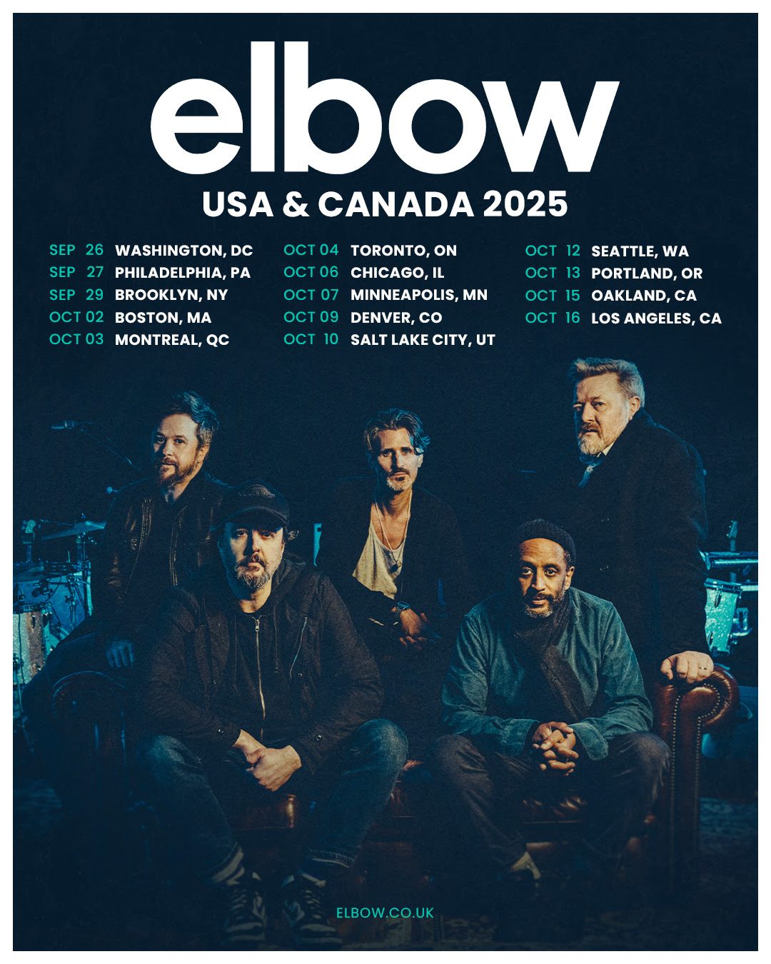 Elbow, the English rock band formed in Manchester in 1990, is coming to New York this September. Elbow just recently released their tenth studio album, AUDIO VERTIGO, which came in at #14 on Brooklyn Vegan’s Indie Basement Best Albums of 2024 list. In support of the well received album, the band has scheduled 2025 North American tour. The band consists of Guy Garvey, Craig Potter, Mark Potter and Pete Turner. This is the first tour Elbow has gone on in five years, and tickets are going on sale today, February 28th. The 14 date show is set to take off on September 26th at 9:30 Club in Washington, DC. The band will then continue touring major cities, and finish off the tour in Los Angeles at The Wiltern on October 16th. The band’s New York City show will be at Brooklyn Steel on September 29th. Tickets to the Monday night show in NYC are currently on sale, and selling for as cheap as $73 USD. for General Admission.