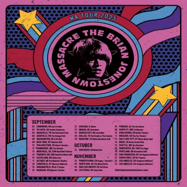 According to brooklynvegan.com, The Brian Jonestown Massacre has announced an extensive 40-date North American tour in two legs. September will blanket the East Coast and Midwest, while November will the tour will be visiting the Southwest and West Coast. Also, The Brian Jonestown Massacre will be hitting New York City on September 9, at Webster Hall and tickets for all shows will be available on Friday, March 14, at 10 a.m. local time.