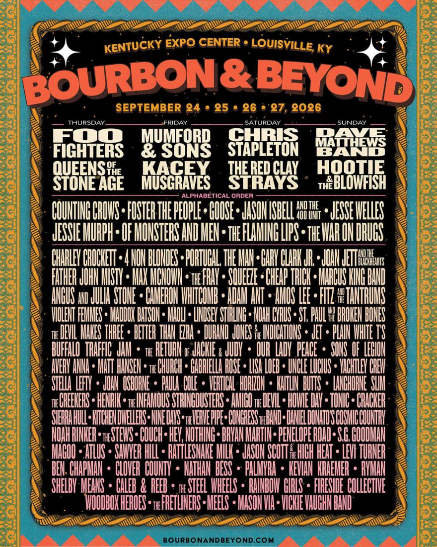 Bourbon & Beyond is returning to Louisville this fall with its biggest lineup yet. The eighth edition of the festival will take over the Kentucky Exposition Center from September 24 through September 27. With more than 100 artists across five stages, the event again blends rock, country and Americana with food and premium spirits.